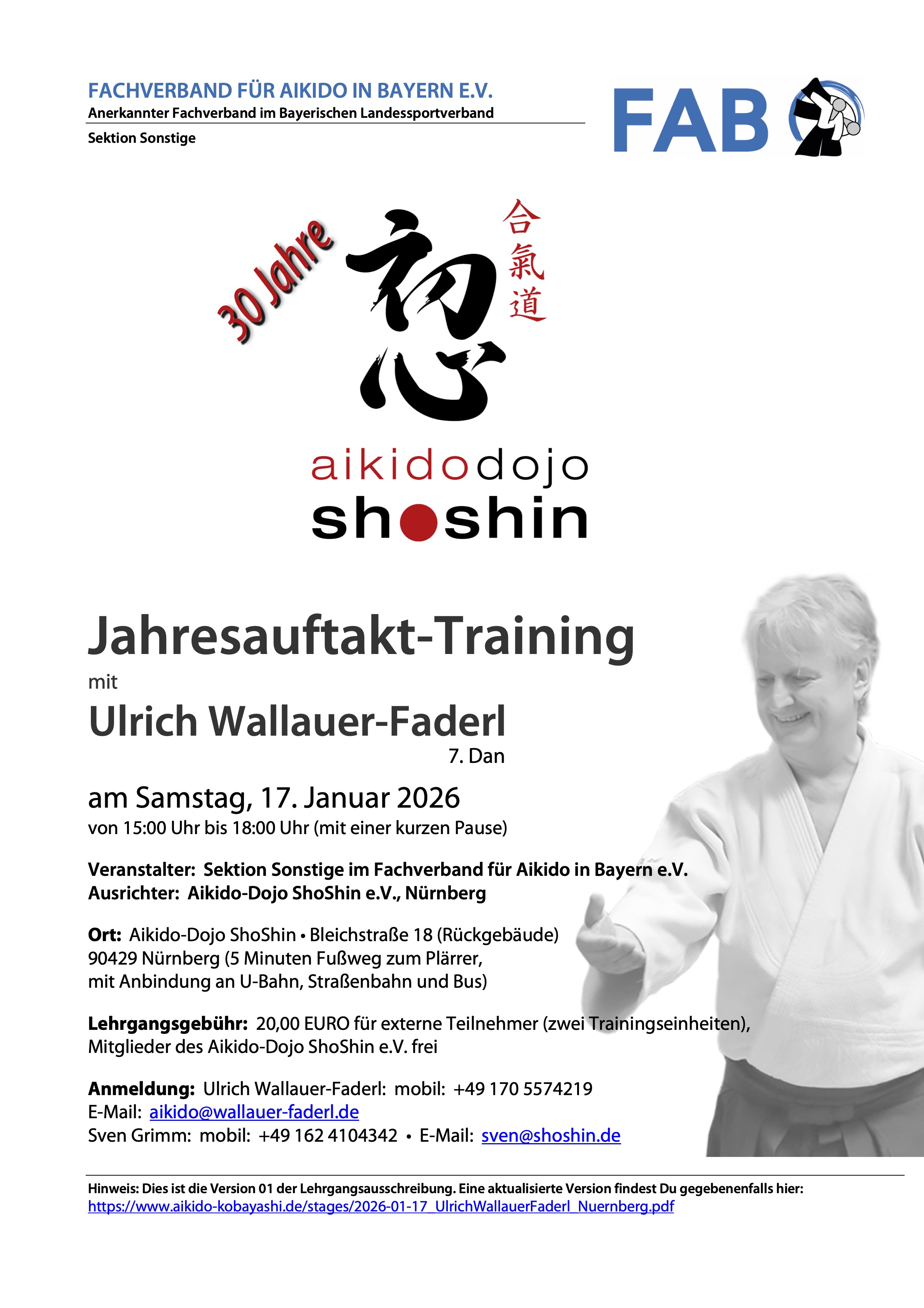 Jahresauftakt-Training mit Ulrich Wallauer-Faderl, 7. Dan